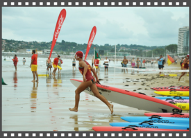 Una vez asignadas las calles, los deportistas corren a la Escalera 8 para recoger los Tubos de Rescate.